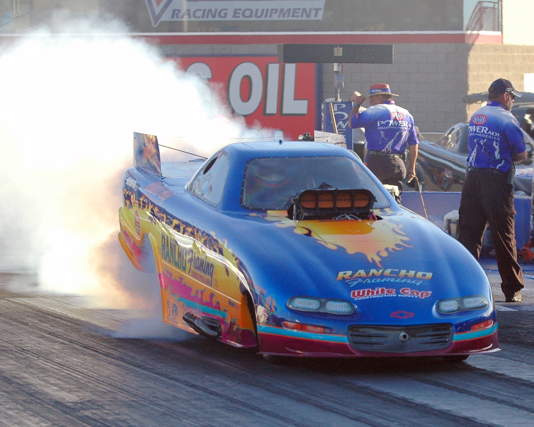 The Rancho Framing / White Cap / Direct Transport Camaro Top Alcohol Funny Car Started the racing